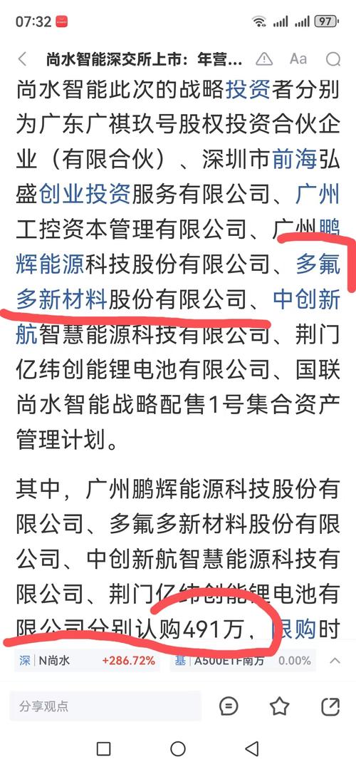 多氟多新材料股份有限公司认购尚水智能491万股,按尚水智能17号收盘价已浮盈3个多亿了,这个应该是实打实大利好!