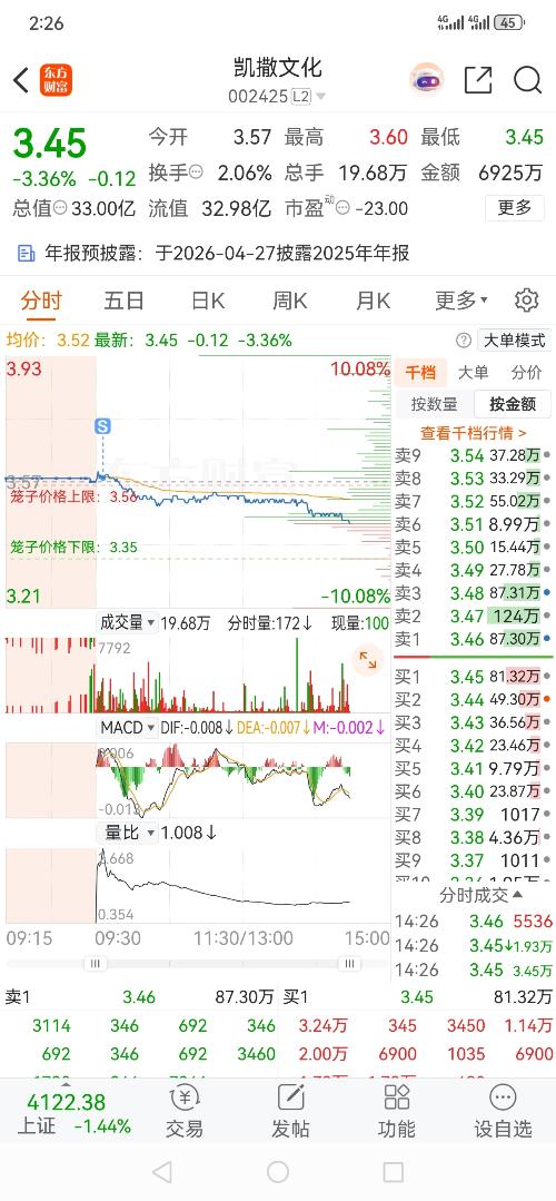 $凯撒文化(SZ002425)$继续做差价,345买回来