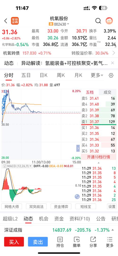 $杭氧股份(SZ002430)$主力在慢慢拉升