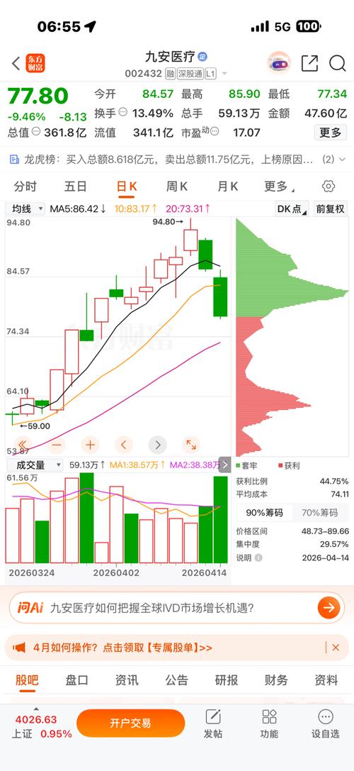 $九安医疗(SZ002432)$早上72.5的时候买入,等待机缘。仅为个人操作。