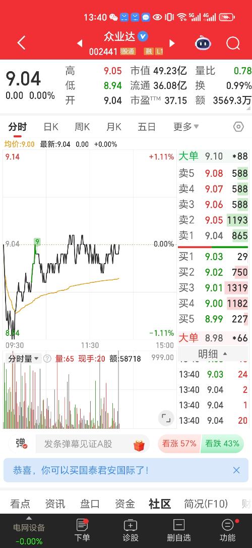 c7531531425482930 更新于 今天 14:02 22次浏览 $众业达(SZ002441)$你到9.6我走算了,你这 11