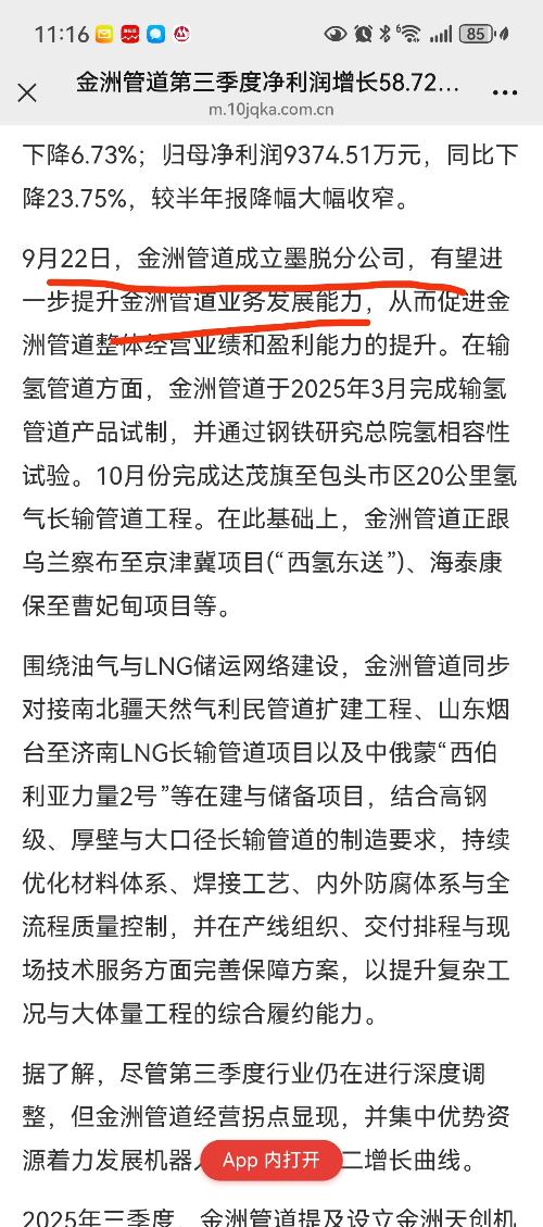 氢能管道龙头的新故事金洲管道最近交出的三季报像一杯半满的水——前三季度整体营收和净利润呈现下滑,但第三季度单季数据却画出一道漂亮的上扬线。这家老牌管道制造商似乎正在经历某种微妙的转折。 传统业务的"氢"转身财报中最亮眼的是第三季度净利润近六成的同比增长,这与公司在氢能管道的布局不无关系。从补充材料中可以看到,其子公司中标了国内首批商业化长输氢管道项目,参与建设总长约195公里的氢能输送"大动脉"。...
