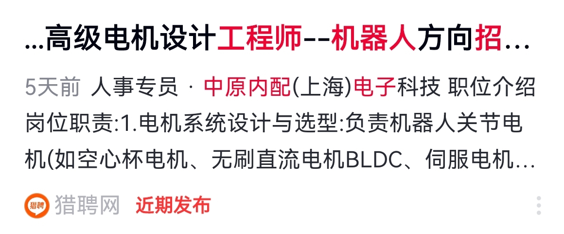 招聘灵巧手专家是真的:空心杯电机工程师!! 五天前,就是在上周三9月17日及之前发布的公告。 一贴为证 也证实了之前内配要做人形机器人的传闻。 重新开个帖子说明!!!!