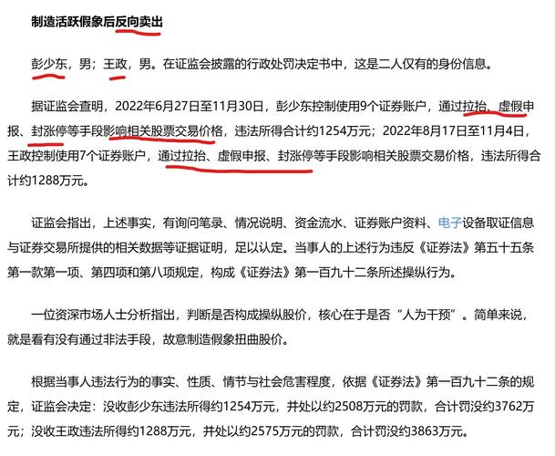 2026年3月13日,证监会公布2026年2号、3号行政处罚决定书,对彭少东、王政二人操纵证券市场违法违规行为,分别罚没约3762万元、3863万元。