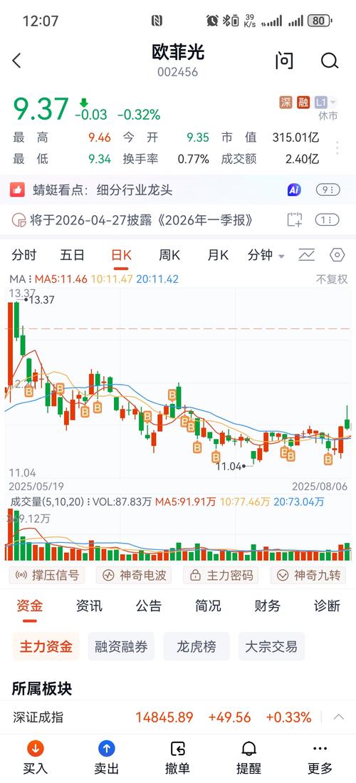 $欧菲光(SZ002456)$太差了,下午会怎么样?有起色吗?