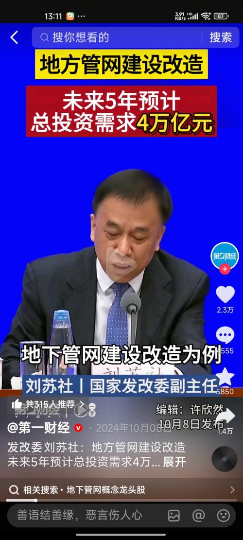 $青龙管业(SZ002457)$ 我搜了一下抖音,去年10月8号说4万亿地下管网,青龙管网当时确实也走了一波,今年同样10月也来这一套,同样的套路大家要来吗?