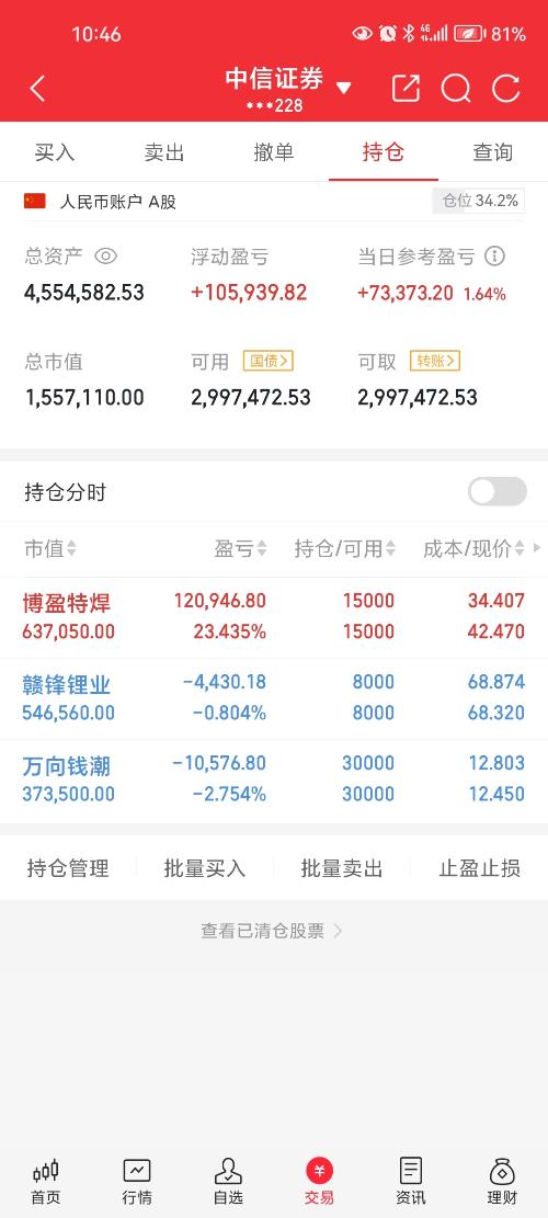 今日买进:$万向钱潮(SZ000559)$ 继续持有:$博盈特焊(SZ301468)$$赣锋锂业(SZ002460)$ 这几天一直都在忙所以没时间跟大家更新 实在抱歉