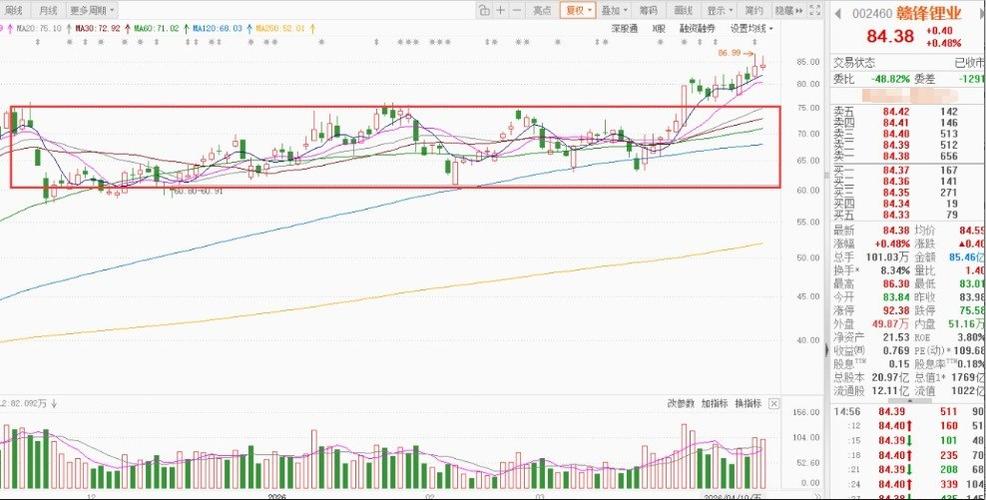 个股观察:(仅为个人看法,不构成任何投资建议) 赣锋锂业 锂矿这边还是看赣锋锂业和天齐锂业这俩龙头,赣锋今天走得相当稳。全天震荡上行,尾盘收在红盘,换手率8.34%,成交额85.46亿,又是最近一个月的天量水平。 这种调整后的底部放量,配合锂价反弹和公司业绩大反转,后续走势值得跟踪。这也是我早评提到的赣锋核心买入逻辑就是业绩爆发:据公司已披露信息,2025年直接从2024年的巨亏20亿,干到盈利1...