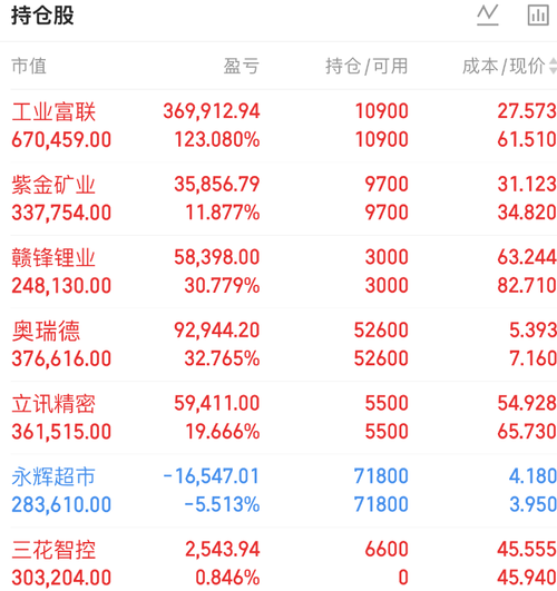$赣锋锂业(SZ002460)$前几天把资金2、8配置,结果配反了。如果天齐80%、赣锋20%,那挣钱多多。结果,现在天齐挣的钱弥补不了赣锋的亏损,只能怪自己认知不行。