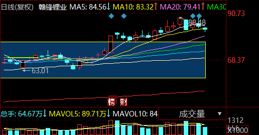 今日小幅调整。上周它连续几日没能创出新高,洛飞就感觉有可能要调整啊,在文里分析了没新高有瑕疵。果然,近期开启小波段调整。不过也不用过分担心,只是小波段调整而已,大趋势并没有走坏,而且短期调整的空间不大,箱体上沿附近有较强支撑,短期调整完还是会重新趋势走强。 $赣锋锂业(SZ002460)$