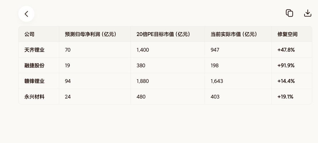 $融捷股份(SZ002192)$空间巨大,相对于板块低估严重,需要补涨50%以上。一季报虽然想故意做低业绩,但到半年报就瞒不住了。 $天齐锂业(SZ002466)$是锂矿资源股的中军,是锂矿资源的大龙头。 $赣锋锂业(SZ002460)$从李的信息看26年碳酸锂的价格中枢会上移到20万/吨。