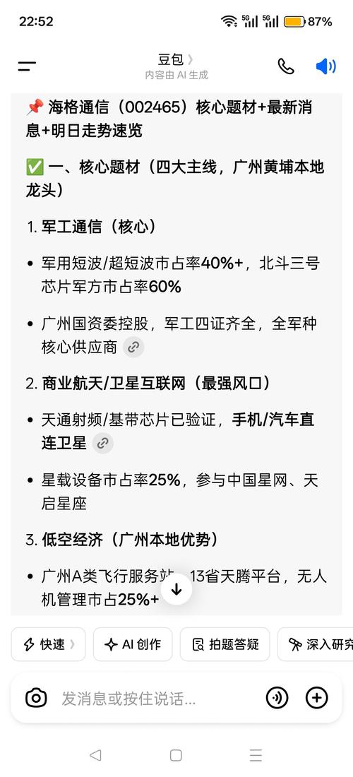海格通信的牌,打到哪了?海格通信最近开了个业绩说明会,把市场最关心的几个问题都摊开讲了。我来盘一盘,这家公司现在到底在什么节奏上。 先看新业务。卫星互联网和低空经济是两大关键词。卫星这块,他们已经做到芯片、终端、信关站、运营全链条覆盖,而且是天通系统里少数能做全系列终端和芯片的厂家。射频、基带芯片都通过验证了,说明技术底子不是概念包装。现在重点在推“手机直连”和“汽车直连”,消费端和行业端都在卡位...
