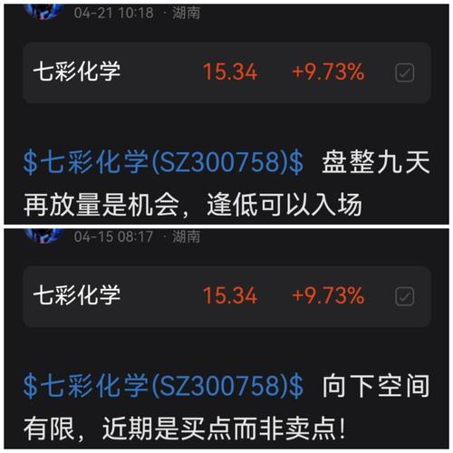 $七彩化学(SZ300758)$这货15号关注到的当时聊过,一直在自选里观察好几天了,今天看到放量14.5追进去了!当时入场也说过! 实际前几天低吸才是最稳妥的,那今天冲高至少能有十几厘米利润可以直接跑路或者有较多利润继续格局都行,这样才算是一个低吸小波段操作成功的单子! 不过还好啦,就算明天回调一些,明天离场都不至于亏了,当然最好是能持续放量就格局一下看看能不能走出一波行情咯! $二六三(SZ002467)$...