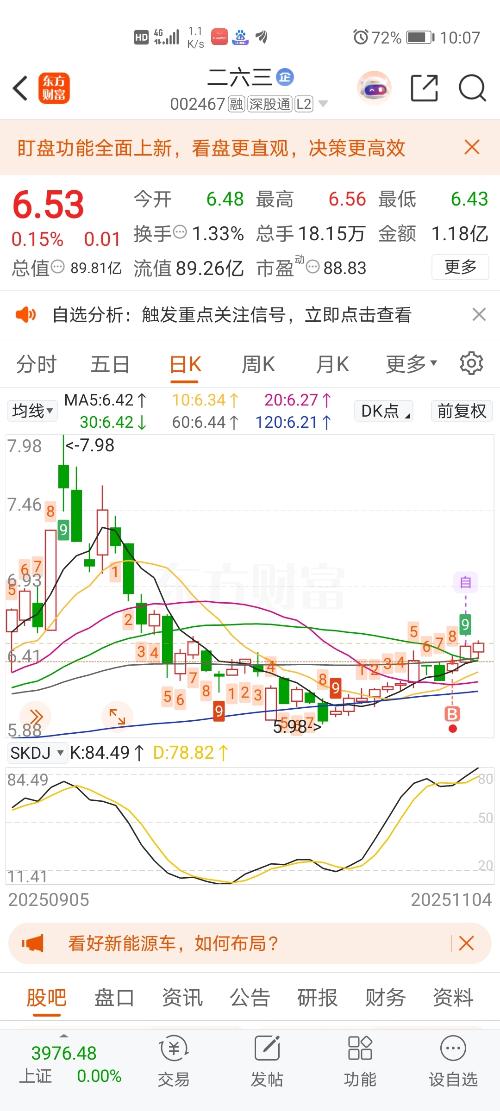 $二六三(SZ002467)$量价配合不错,静待长阳出现,脱离底部区域