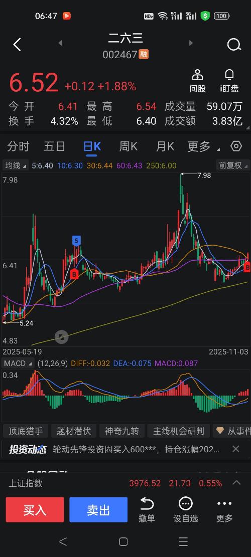 $二六三(SZ002467)$卖了包钢6.46入的,看好你哦