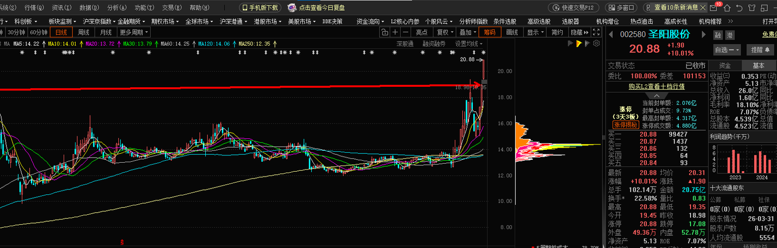 热烈庆祝大股东李小龙先生成功在涨停板减持一个小目标,现在还剩下一个小目标。