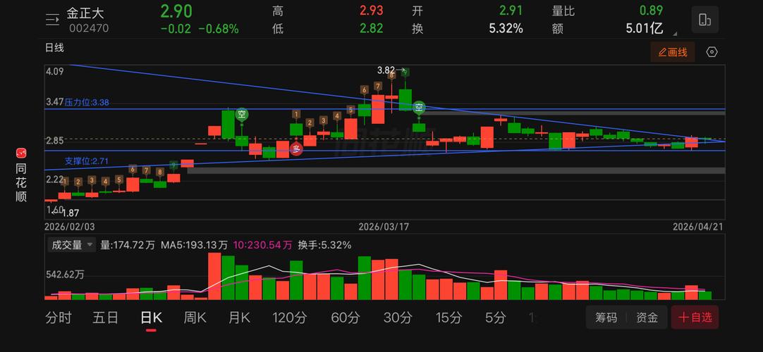 $金正大(SZ002470)$早晨我看跌了,我2.82卖了,过了一会我看又涨上去了,我2.91又买回来了
