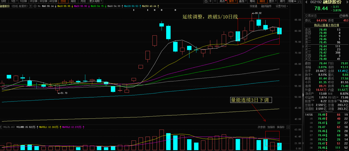 融捷股份: 我个人认为今日融捷股份早盘低开后震荡走弱,整体表现弱,短期筹码兑现压力释放。从交易活跃度来看,量能较之前萎缩,主力资金小幅净流出,抛压明显,高位分歧加剧,市场情绪降温。消息面上,碳酸锂价格阶段性震荡,叠加前期涨幅较大,资金兑现意愿增强,带动个股回调。技术面来看,股价回踩短期均线,MACD红柱缩短,我个人认为短期调整压力显现。总的来说,我个人认为今天的调整属于前期上涨后的技术性回调,高位...