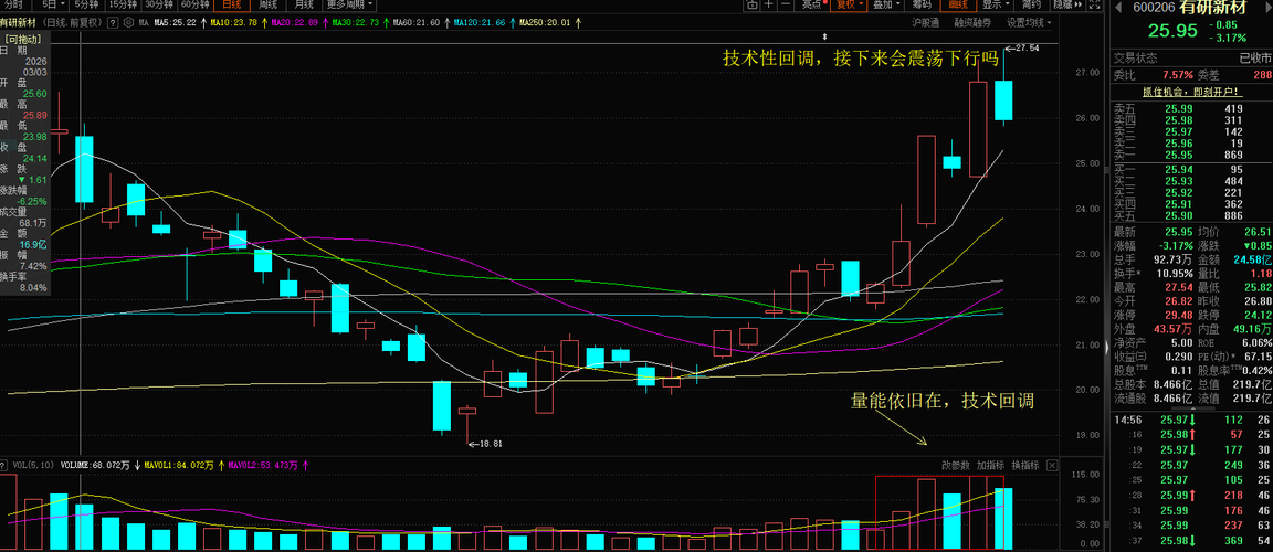 融捷股份: 我个人认为防御风格持续,锂电板块分化加剧政策面,政策上工信部等四部门此前已持续部署锂电池行业"反内卷",加速产业出清;工信部明确将加快编制智能网联新能源汽车"十五五"规划产业端,乘联会数据显月新能源商用车销量同比大增。然而,锂电及有色金属板块整体承压,融捷股份昨日跌3.81%,跌幅领先板块。我个人认为资金面显示,主力连续多日净流出,叠加前期涨幅较大,高位兑现压力仍在。我个人认为今日早盘...