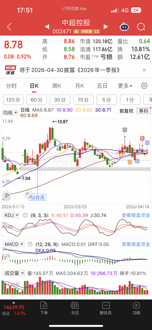 $中超控股(SZ002471)$我说做个实验,没人看的帖子,没人回复的帖子,判断就是对的。来来来,我们揭开试验谜底。四月十号,下午十五点多,我发帖提示今天周一的中超控股三个买点,8.43,8.62,8.73。你们认为准确率高吗?无法判断是吧?看看这个发帖,截止收盘,阅读量265,回帖数0,点赞数0。我一直在看这些数据,几乎没变化,我知道,这些买点数据取中位数没错。8.61或者8.60买入没有问题。...