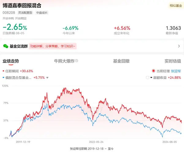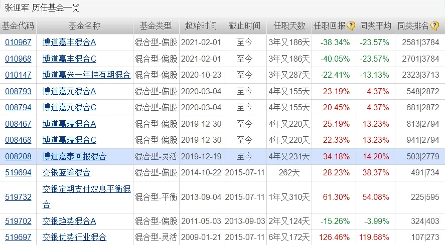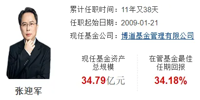 一、张迎军管理博道嘉泰回报,任职回报34.18%,同类排名503/2779。2000年研究生毕业,历任申银万国证券研究所策略研究部研究员,太平洋资产管理有限公司组合管理部组合经理、太平洋保险集团投资经理,交银施罗德固定收益部副总经理、权益部副总经理,基金投资部副总监。2019年5月加入博道基金,现为研究总监兼公募基金投资部总经理。2009年1月21日上任基金经理,管理规模35亿。顺势而为,尊重市场...