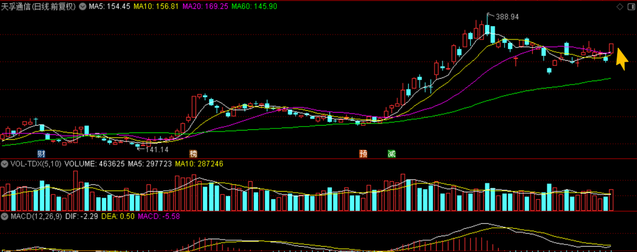 $天孚通信(SZ300394)$天孚通信(数据中心+CPO概念+光通信),巴菲特先生说了,股票市场的最终结局,是兹金从躁动者流向有耐心的人。昨日有些朋友坐不住了,认为我们错了,我们也浮亏了6个点,昨日我们吃大面了,但我们保持理性,不因恐慌而离场,周线没有效碟破10MA就不离场,止损点276元(如下图如果碟破黄色趋势线有不能及时反弹则离场)。盘前策略是加苍,我们完成了盘前策略的加苍动作,急跌后W底反...