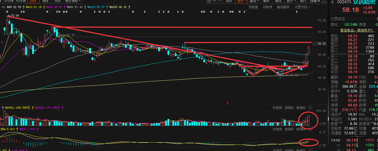 $立讯精密(SZ002475)$坑货。现在这么牛,前面为何搞一连串阴线? 毒辣啊。