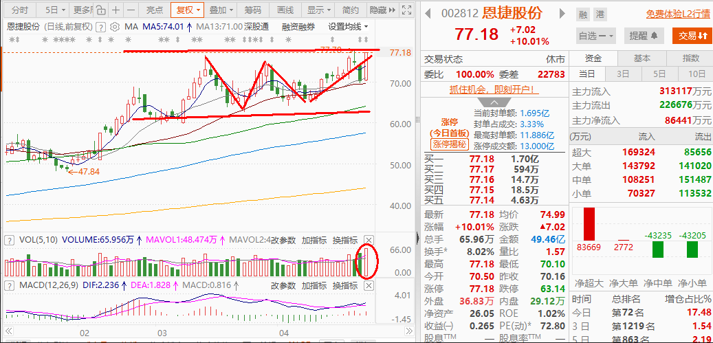 个人感觉,66上下会有一段时间的震荡,这股从启动就没像样的调整过,这是不利于健康上行的,在这个前期顶部制造分歧震荡巩固一下未尝不可,我认为上行趋势还没有改变,但也要关注大盘和行业走势,震荡过程变成拐头向下也是有可能的