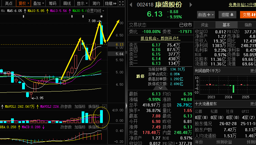 $立讯精密(SZ002475)$$康盛股份(SZ002418)$$通鼎互联(SZ002491)$ 各位老铁,晚上好。 免责声明:本文仅为当日A股市场客观复盘与盘面数据梳理,不构成任何投资建议。市场有风险,投资需谨慎。个人持仓展示仅为复盘参考,不代表交易指引,投资者应独立审慎决策。 一,关注标的解析:(个人观点仅供交流学习,不作为投资操作依据。) 1.立讯精密: 立讯现在涨的的趋势像是从打工人变老板...