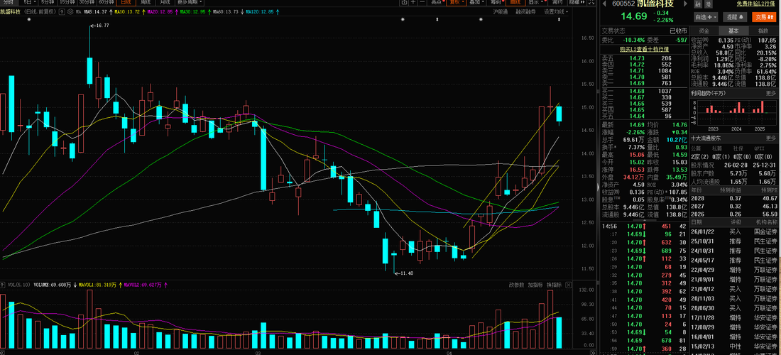 立讯精密: 我个人认为今日立讯精密资金博弈激烈,高位筹码兑现。消息面上,受益于荣耀机器人订单、AI服务器业务放量催化,基本盘强劲。技术面来看,我个人觉得股价在前期高点附近遇阻,我个人会关注支撑与压力的突破情况。所以今日属于高位分歧的震荡行情,后续若无法放量突破压力,大概率进入横盘整理。 凯盛科技: 我个人认为今日凯盛科技量能较前几日有所萎缩,资金小幅净流出,说明机构资金筹码兑现意愿增强,市场情绪降...