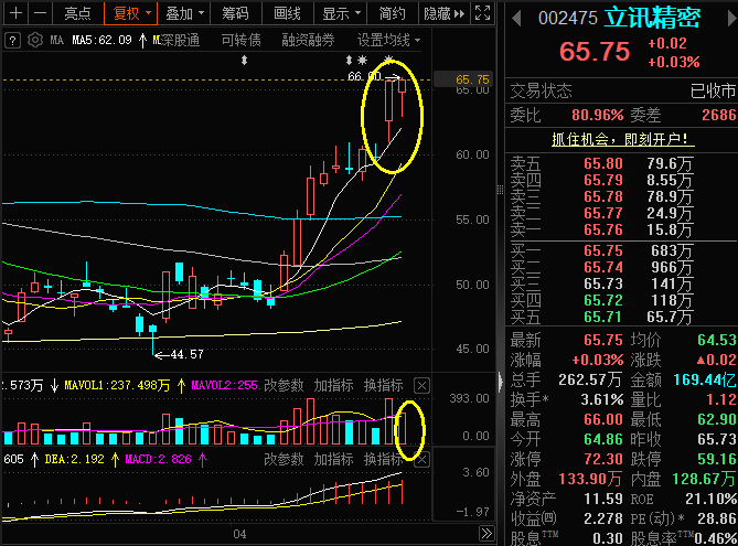 $蓝色光标(SZ300058)$300058:昨天冲高回落之后,今天继续冲高回落,虽然出现了调整,但是依然还是守住了下方五日线的支撑。从技术面来看,现在还是在圆弧底的上升通道之中,昨天走出三连阳的红三兵之后,今天出现的调整是良性的调整,后面回踩下方五日线之后关注他的量能,如果能够放量,还是有望来大阳线修复的,依然还是可以继续在自选中研究。 $立讯精密(SZ002475)$002475:昨天放量大阳...
