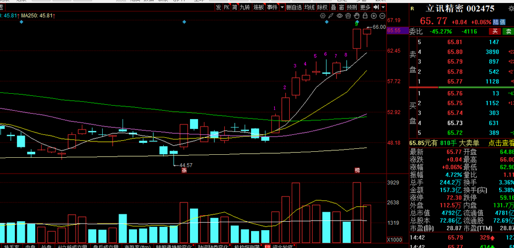 资讯 立讯精密今日大宗交易平价成交246.46万股,成交额1.62亿元