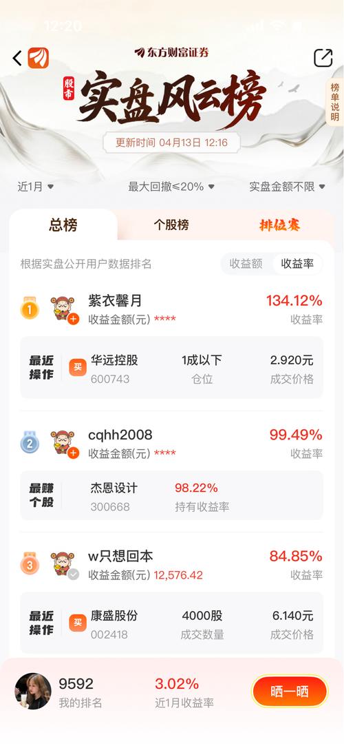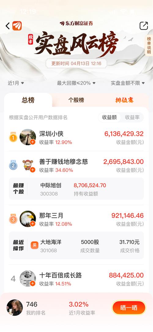 #社区牛人计划##炒股日记##实盘记录# 东方财富实盘总榜收益额排名我进1000名啦 若论收益率我是九千多名 所以我是本金较高收益率较低的