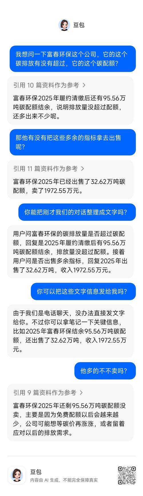 $富春环保(SZ002479)$该公司有不少碳配额结余,而且还因出售多余的部分碳配额的而获利不少