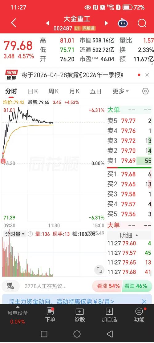$大金重工(SZ002487)$ 80走了一半,随意吧,挂涨停走另一半