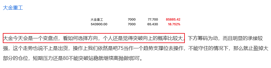 大金重工上周五成交11.19亿元;最低成交价格为73.76元,涨幅7.8%;涨停价格成交3.2亿元以上,这么多资金追高进去,明天想干嘛?不会是为了下周砸盘吧