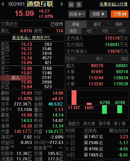 $通鼎互联(SZ002491)$速度抄底,收盘又可以晒图了