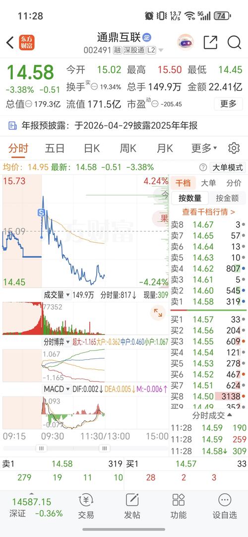 $通鼎互联(SZ002491)$快递跑,下午要跌停