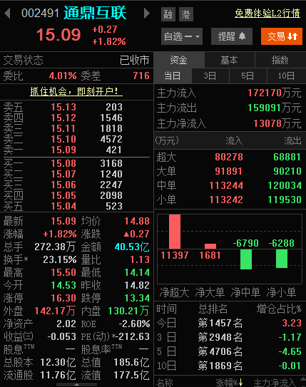 $通鼎互联(SZ002491)$评论区没事多陪陪老婆孩子,实在不行陪,小几都可以,就算康宁跌也是明天闭市算,现在才什么时候