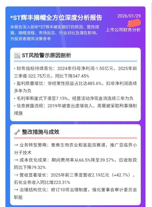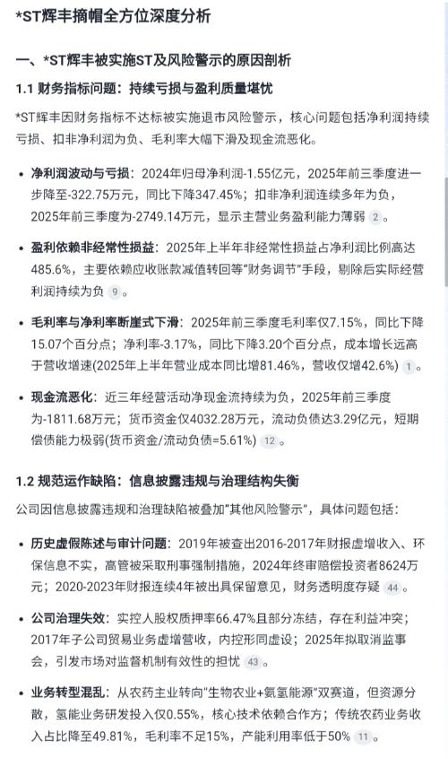 - @妙想 *ST辉丰(002496)的业绩拐点已非常临近,核心逻辑在于历史包袱出清、主业经营改善、新业务放量与摘帽预期的多重共振。