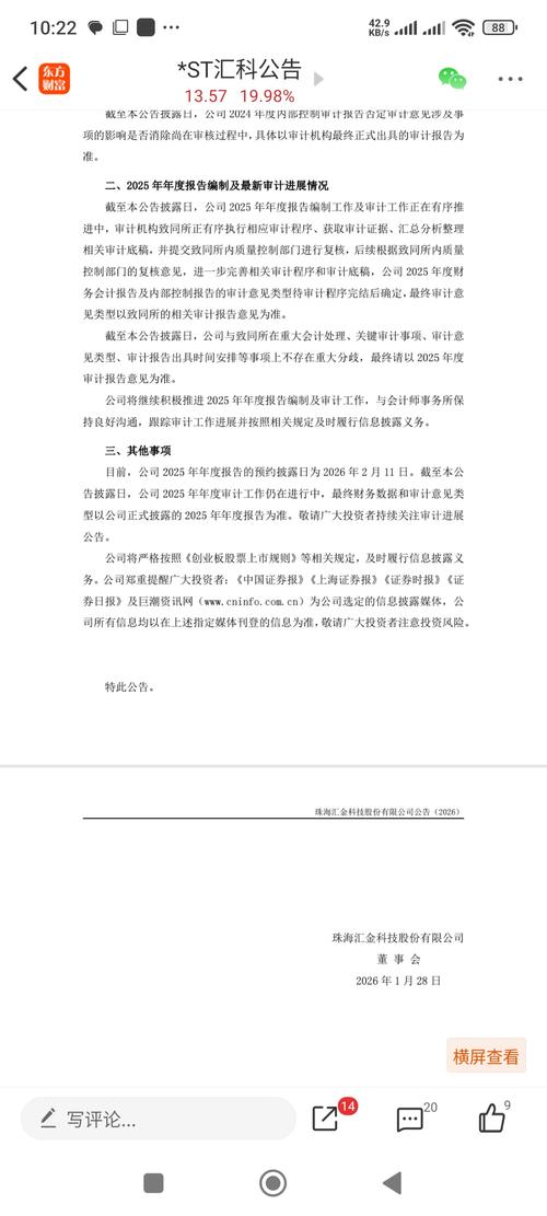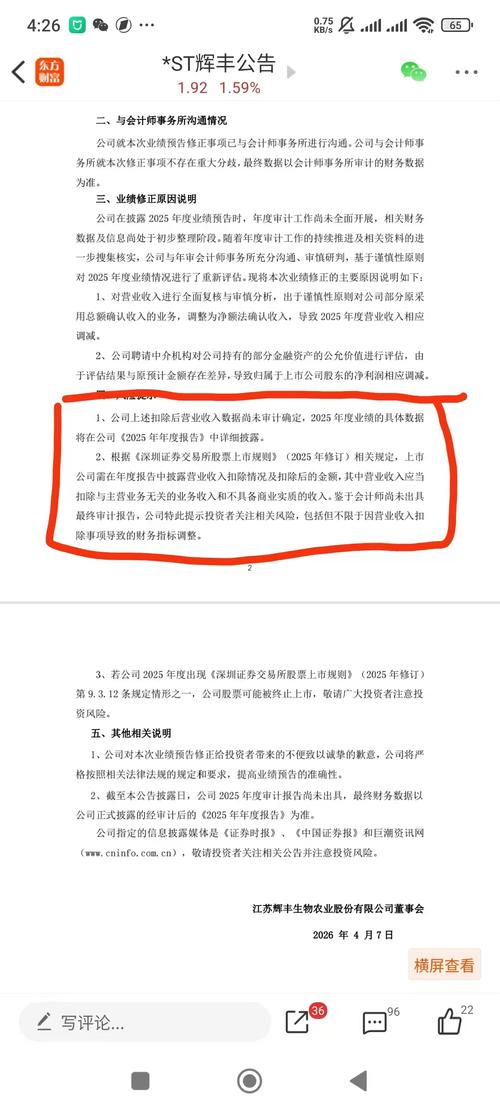 $*ST辉丰(SZ002496)$*ST辉丰与ST汇科最大区别:ST辉丰每次次业绩预告,每次审计进展都说可能调整营收,但ST汇科每次都没说要调整扣非营收!!!