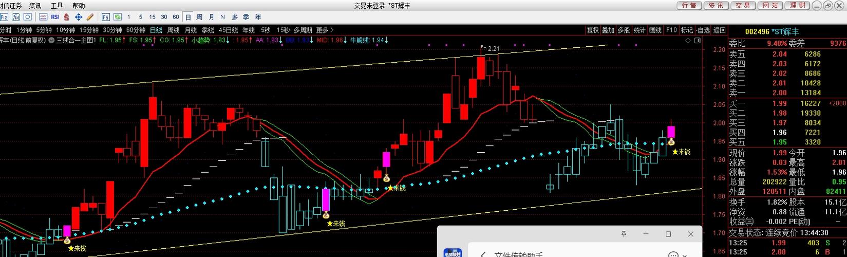 $*ST辉丰(SZ002496)$洗盘结束,不装了,我摘星摘帽了,跟踪1个月,前面6天3涨停板就是抢筹,发现筹码不够,直接借风险提示暴力洗盘3天下杀3个板,第四天接回大部分,连续一个月慢慢吸筹,成交量温和放大,股价慢慢上涨,3月3号就是最后诱空,3月4号快速拉回,3月5号信号确定,今天强势封板!下周大概率2连板,在洗一波,后面开启主升浪,目标5.88。发文验证,作为纪念。