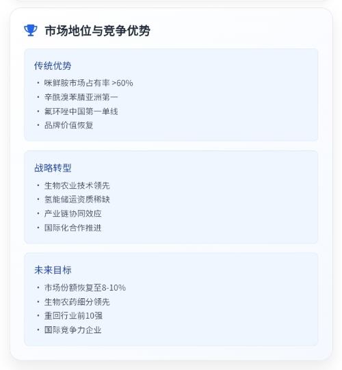 一、亏损扩大的核心原因(2024-2025年) 1.经营层面:主业萎缩、成本高企 传统农药业务衰退:环保整治、行业竞争加剧,老产品(咪鲜胺等)毛利下滑、销量萎缩。 产能利用率低、固定成本高:长期停产/限产、装置老化,单位成本居高不下。 转型初期投入大、回报慢:生物农业(小分子肥)、氨氢项目尚在培育,2024-2025年尚未贡献利润。 2.财务与资产减值(2025年亏损扩大主因) 收入确认调整:部分...