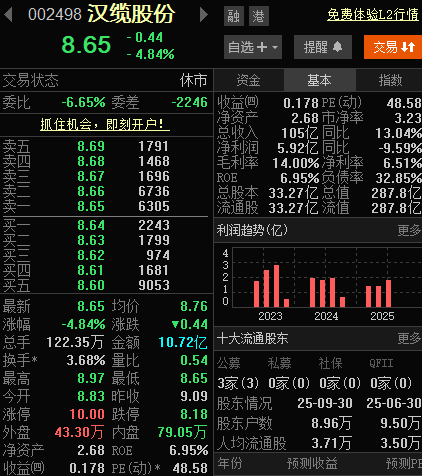 $汉缆股份(SZ002498)$散户已经不多了吧