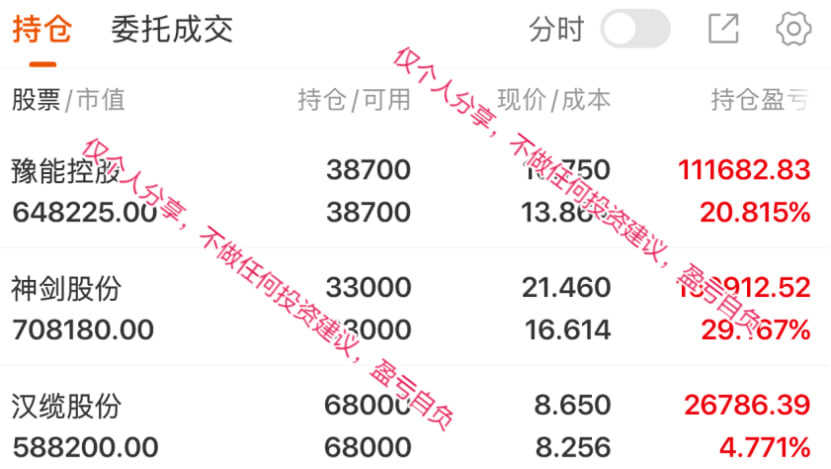 蓝色光标(300058):近期走势较为稳健,股价沿五日线真荡上行,每次回踩下方五日线时知撑较稳。昨天上午虽然有所调整,但整体位置不算高,目前已站上多条均线上方。在五日线知撑有效的情况下,后续若有市场皆力,仍有继续表现的空间。具备一定的弹性空间。$蓝色光标(SZ300058)$ 汉缆股份(002498):昨天走势有所调整,成胶量明显萎缩,目前股价位于五日线下方,上方存在一定阻力。如果不能放量突破五日...