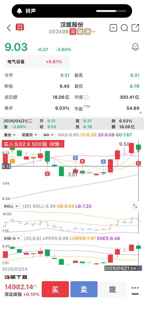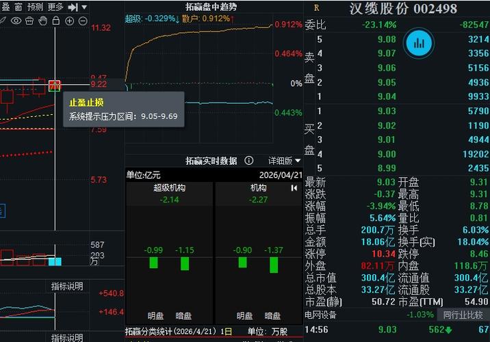 $汉缆股份(SZ002498)$:今日盘面存在一定分歧,早盘开盘后股价大幅回踩,一度跌至5日均线下方。好在下方支撑力度较强,随后迎来强势反抽,股价重新站上5日均线,走势韧性较足。近期个股整体上升趋势明显,均线系统保持多头排列,中期结构依旧稳健。目前股价在9.4元附近遭遇一定阻力,上行节奏有所放缓,短期以震荡消化压力为主。若后续能够放量突破该位置压制,上方空间将进一步打开,有望延续上行趋势。当前暂以...