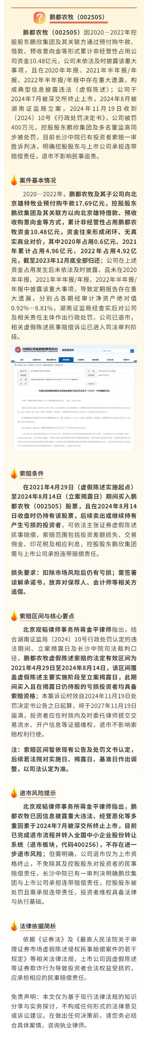 鹏都农牧24年终止上市,投资者胜诉仍可维权