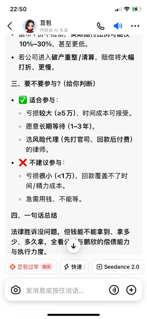 鹏都农牧股民一审胜诉。上海古北所娄霄云提示,凡是2021年4月29日到2024年8月14日期间买入并且之后持有或者卖出的可艘寻了解,娄霄预律师,合规登记。值得关注的是,作为一家农业与食品公司,鹏都农牧经营情况尚可,2025年半年报公司营业收入61.91亿元,亏损2.28亿元,同比减亏。