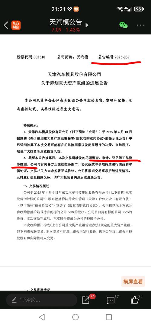 $天汽模(SZ002510)$三月公告中“还有待商榷、论证″这一句话,这四月公告里看不到了。 股友们仔细看看。