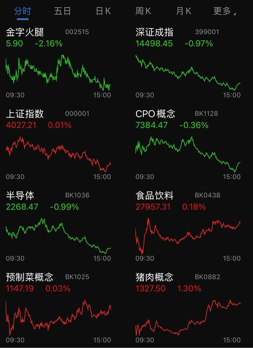 $金字火腿(SZ002515)$ 上午,食品,猪肉下跌,cpo,半导体上涨,这货下跌1个点左右。 下午,食品,猪肉翻红,cpo,半导体下跌,这货下跌到2个多点。 反正就是谁跌就跟谁走,还翻倍的速度下跌。
